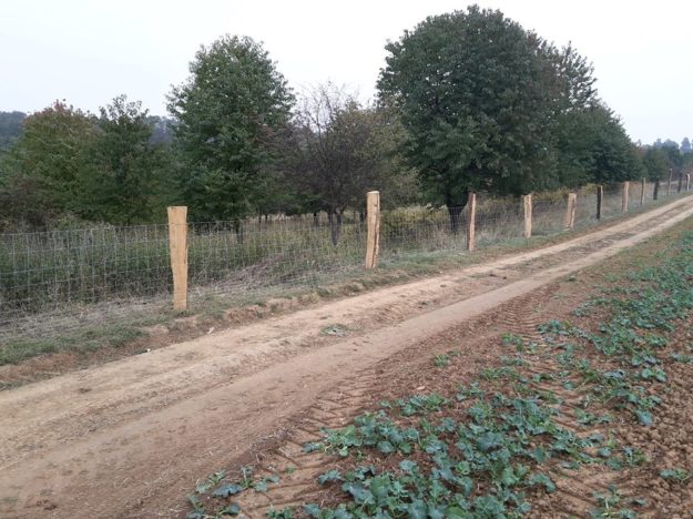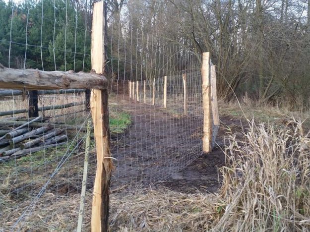Umzäunung bei einem Johannisbeeren-Obstgarten Umzäunung bei einem ehemaligen Johannisbeeren-Obstgarten, z.Z. einem Ziegenzaun. Akazienpfähle mit Drahtnetz 120cm. Grundstück an einem relativ steilen Hang.