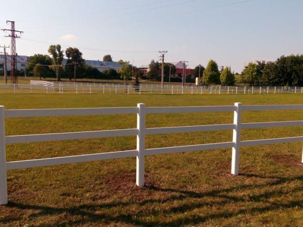 Kunststoff-Umzäunung Morava Zaunpfosten werden auf einbetonierte Eisenrohren eingesetzt und Bretter mit einem Eisenvierkantrohr 2,5×2,5 cm armiert.