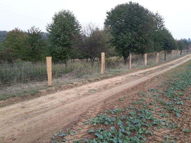 Ohrada pro skot- akátové kůly s dvěma řadama drátu