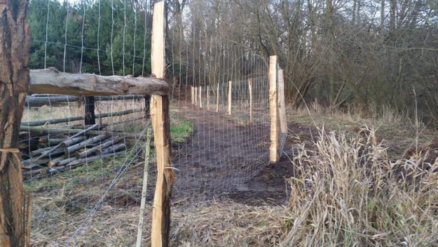 Obora na dančí zvěř Obora pro dančí zvěř, akátové štípané kůly a pletivo 200 cm.