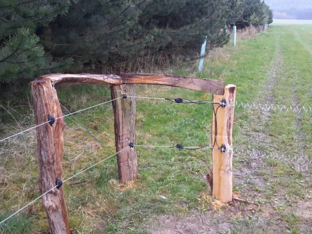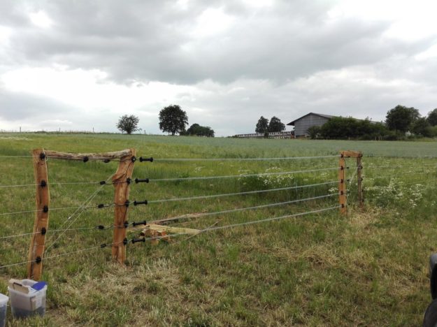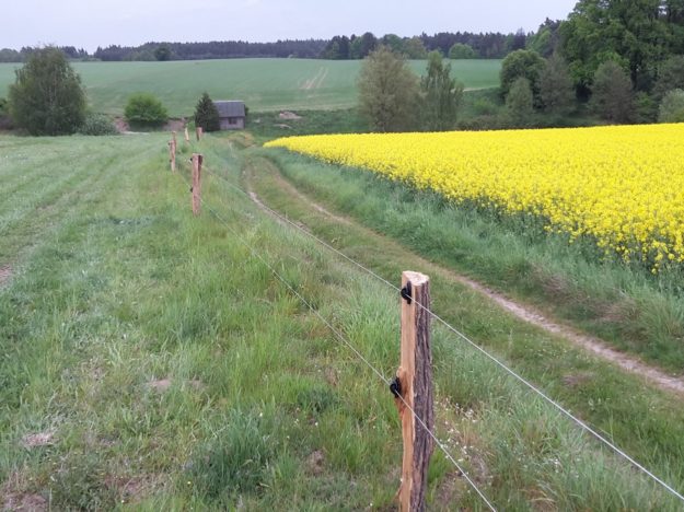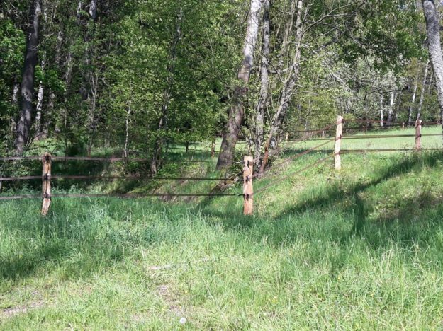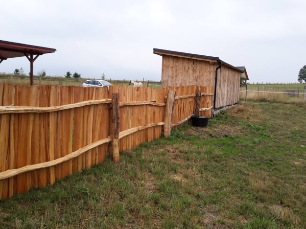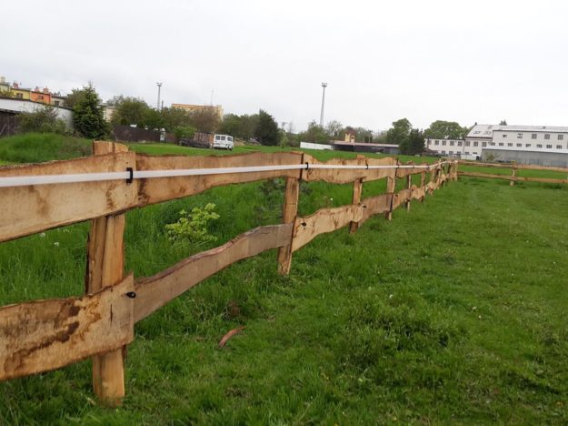 Ohrada Jednoty Ohrada pro kozy – akátové kůly, pletivo 120 cm a jedna řada ohradníku proti podlézání zvířat